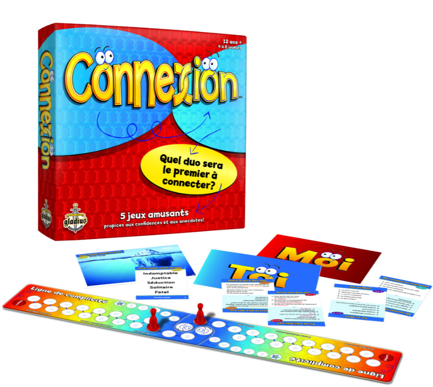 Connexion est un jeu qui teste la complicité qui règne au sein de duos de joueurs. À travers les différents jeux proposés, les joueurs devront prouver que leur connexion est la plus forte en marquant des points, tantôt en ayant les mêmes réponses que leur coéquipier, tantôt en devinant ses réponses. Le premier duo à rejoindre le centre de sa ligne de complicité risque fort de remporter la partie! Quel duo sera le premier à connecter? Le jeu idéal pour susciter des rires, des discussions et surtout, donner lieu à des découvertes inattendues!