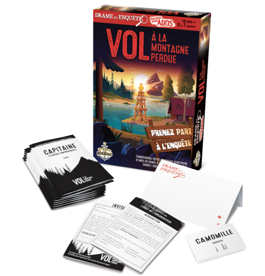Vol à la Montagne Perdue est un jeu d’intrigue de la collection Drame et enquête, version pour ados, dans lequel chaque joueur incarne un personnage suspecté d’avoir commis un vol. Le but est d’en découvrir l’auteur ou de ne pas vous faire prendre si vous êtes le voleur.